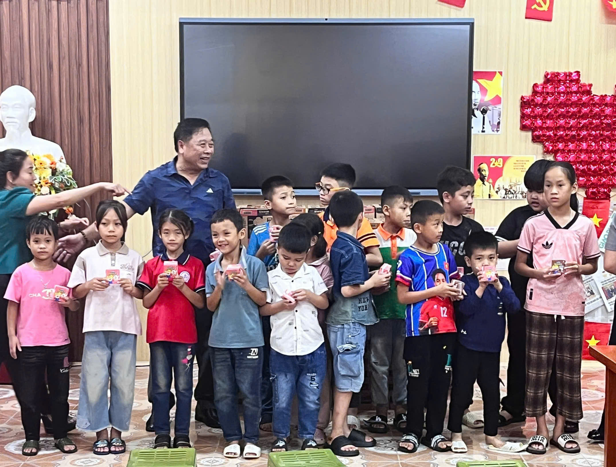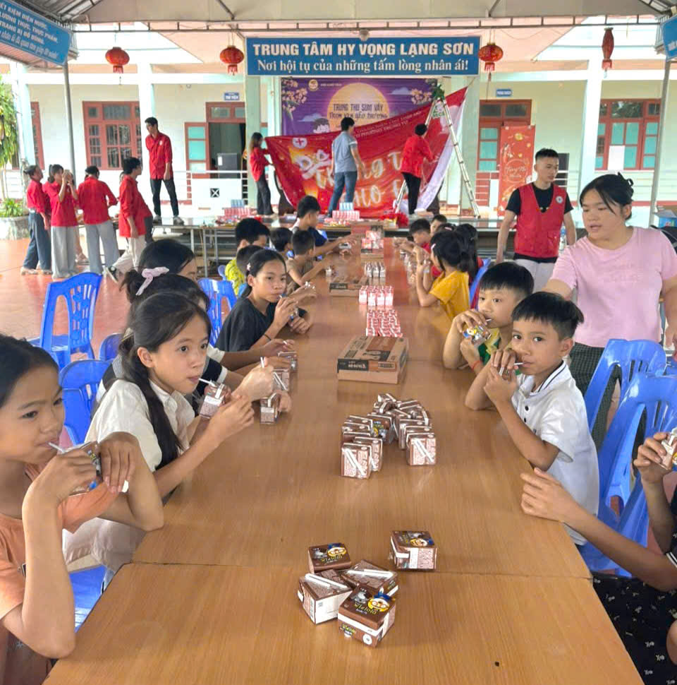 Các bé tại Trung tâm hy vọng Lạng Sơn cùng lót dạ bằng sữa dinh dưỡng Mykids trước chương trình Trung thu