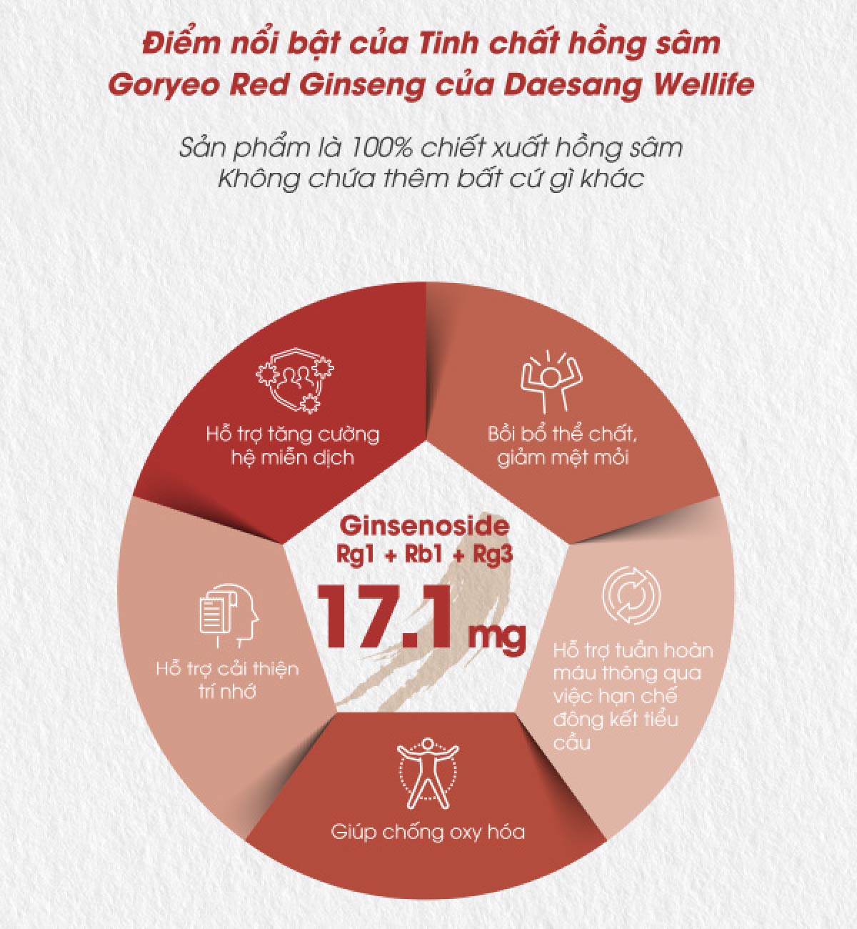 Ginsenoside – Rd: Tác dụng bảo vệ thần kinh, chống viêm. Giúp giảm tình trạng stress ở não bộ.
