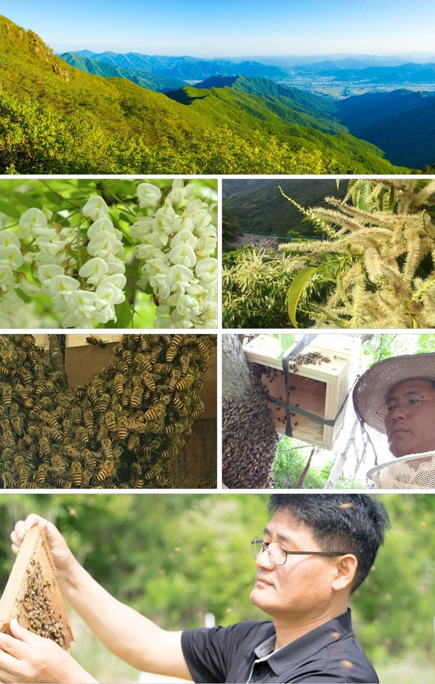"Núi Jiri vùng Namwon, Hàn Quốc là một ngọn núi linh thiêng, có thảm thực vật đẹp và phong phú bậc nhất Hàn Quốc, nơi đây là khu vực có mật ong đặc biệt chất lượng nhờ việc tránh được sự ô nhiễm môi trường. Những bầy ong lớn được nuôi nhờ phấn từ vô số các loài hoa bản địa, tạo nên hương vị độc đáo rất riêng chỉ có mật ong Jiri mới có được."