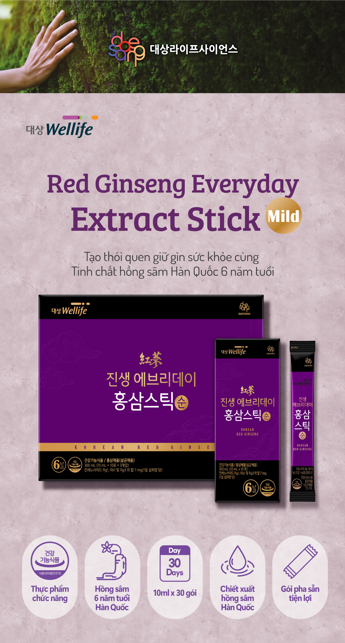 Nước hồng sâm Red Ginseng Everyday Extract Stick Mild 10ml x 30 gói