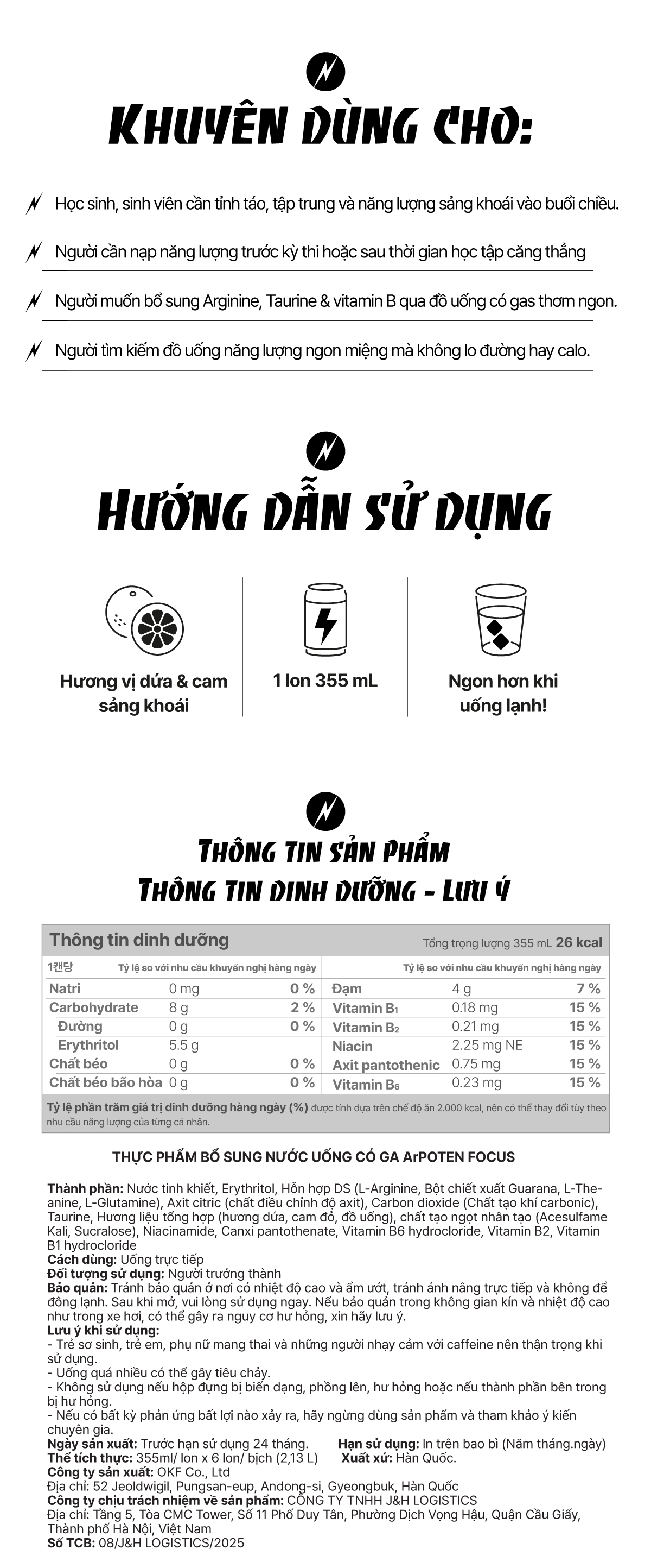 TPBS Nước uống có ga Arpoten Focus lốc 6 lon 355ml