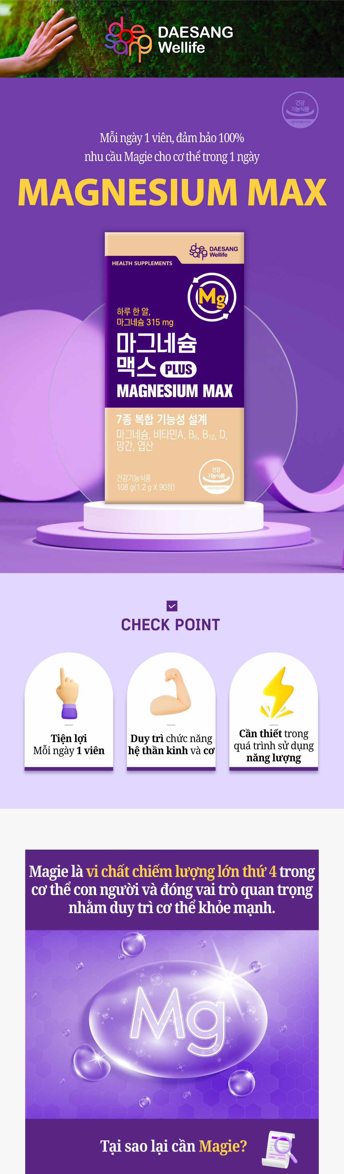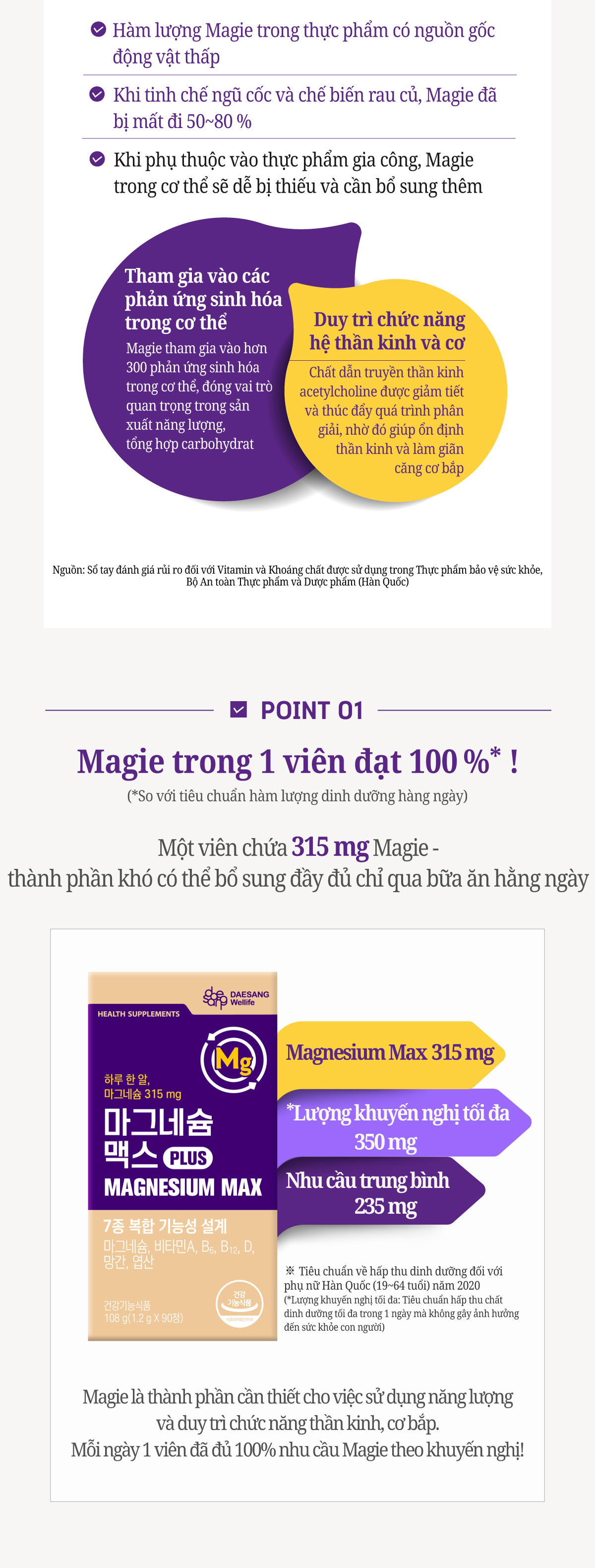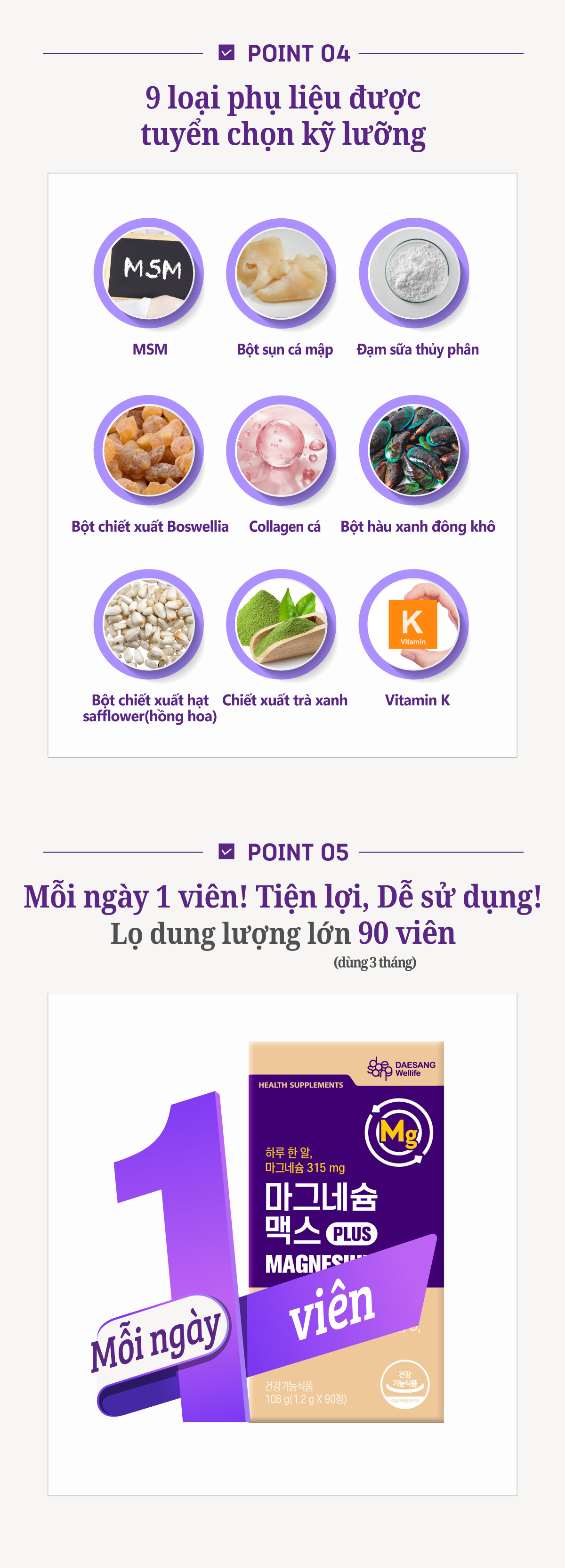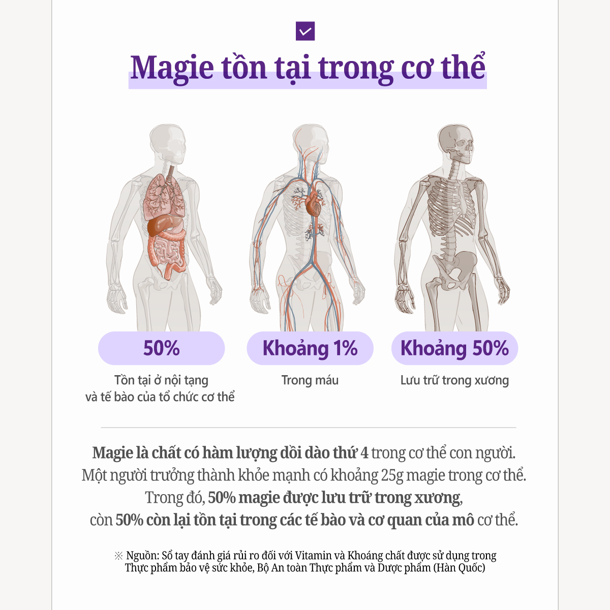 Mỗi ngày 1 viên, bổ sung 315mg Magie
