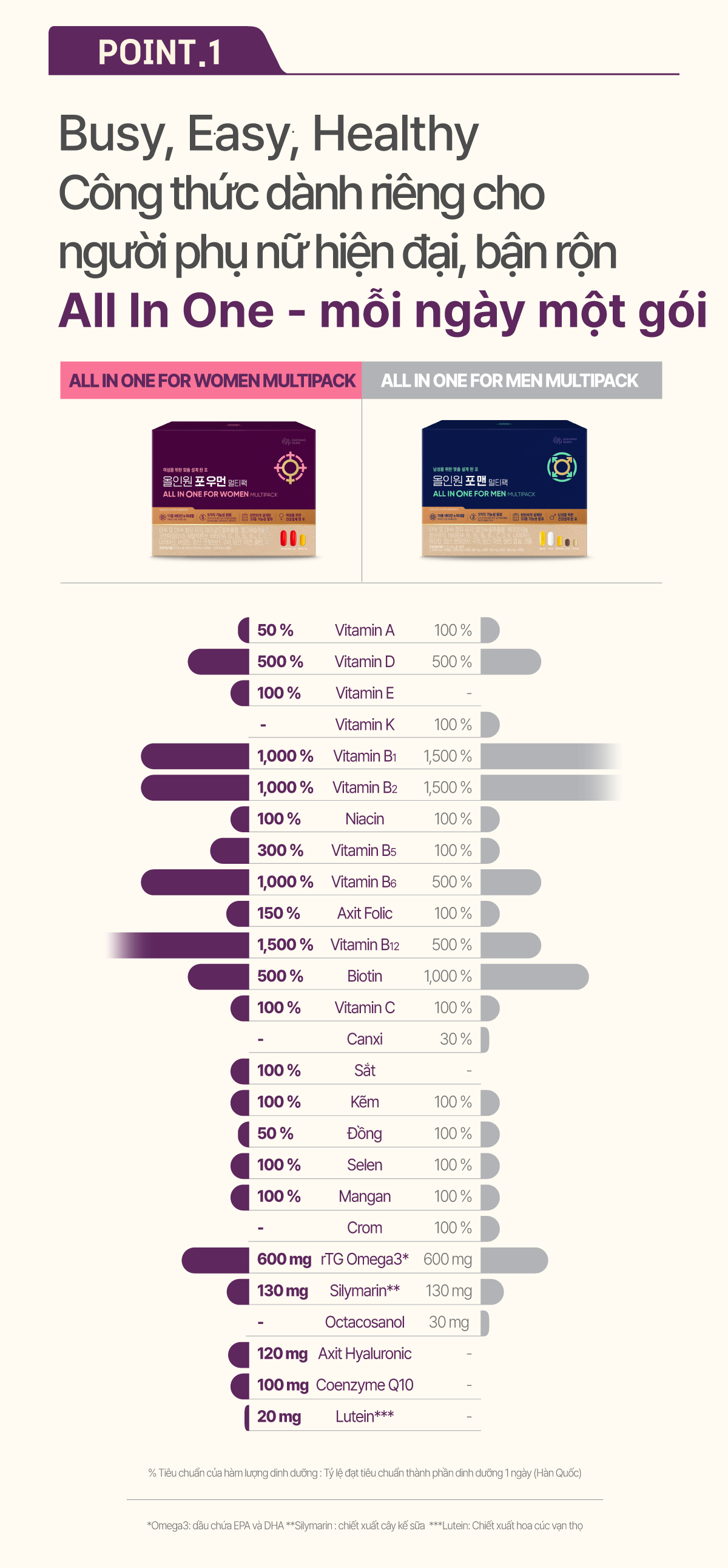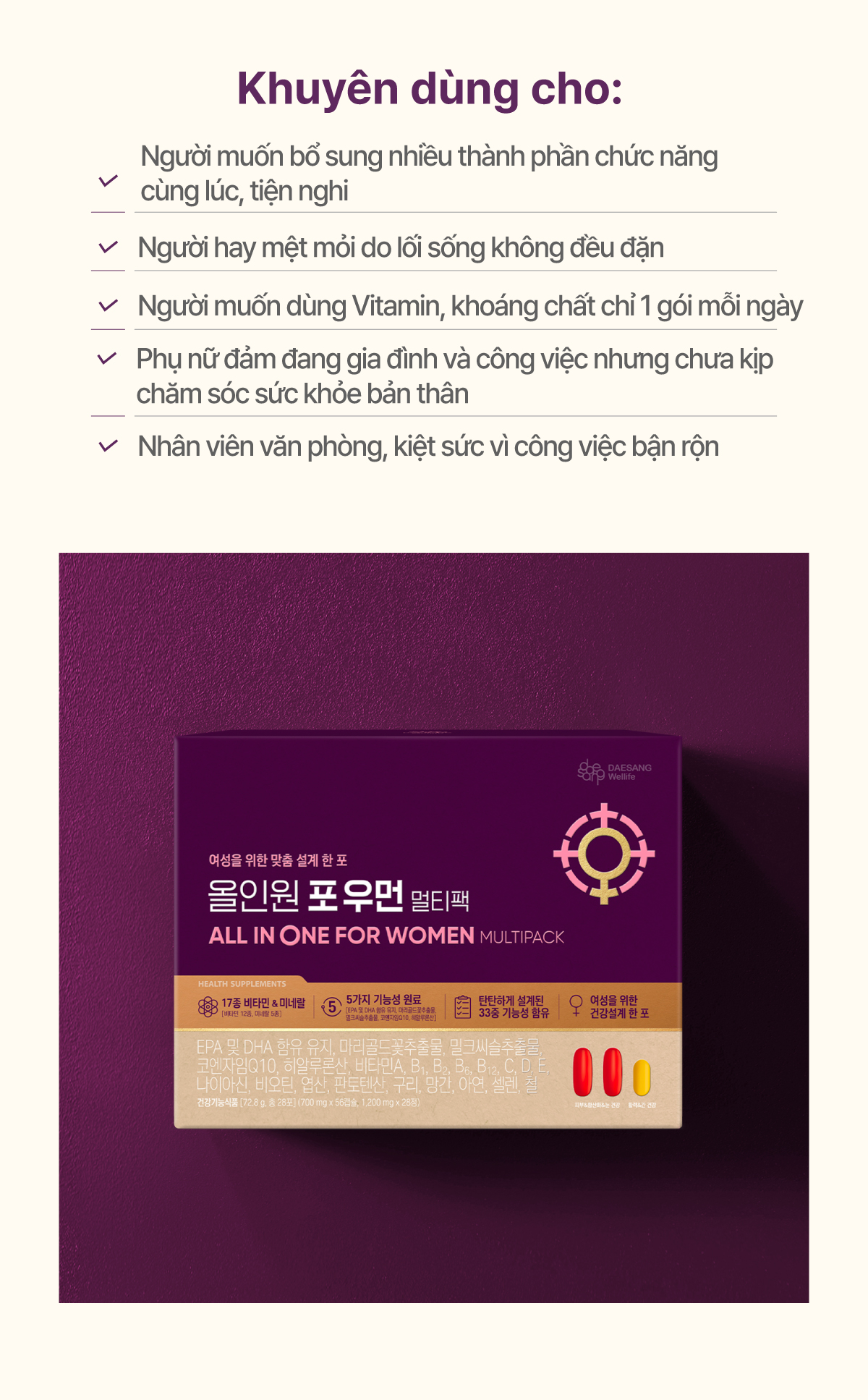 Vitamin nữ All in one for women Multipack hộp 28 gói